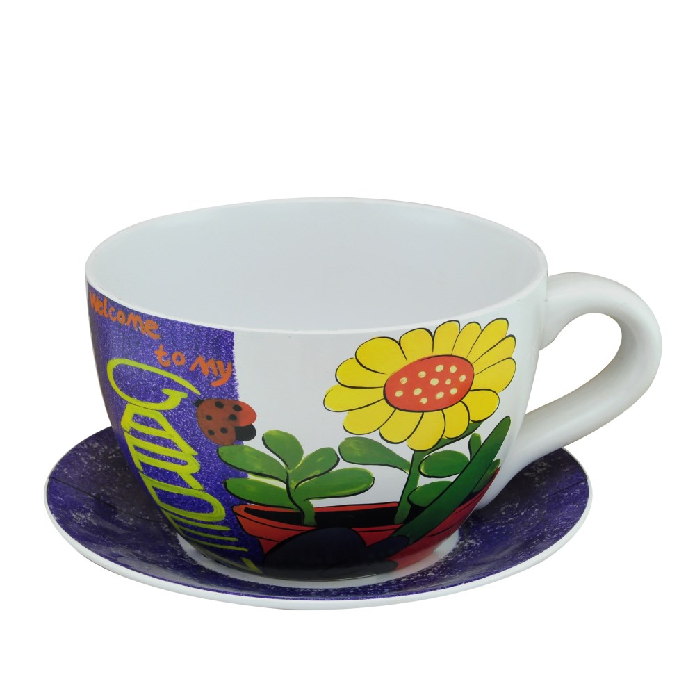 The FLORANCE Ceramic Cup Pot features a fun with stamped flowers and bright pattern that can accent any room. The drainage hole prevents over watering while the attached saucer protects your home's surfaces. The modern design compliments a variety of decor styles. Pots can be displayed individually or as a collection.