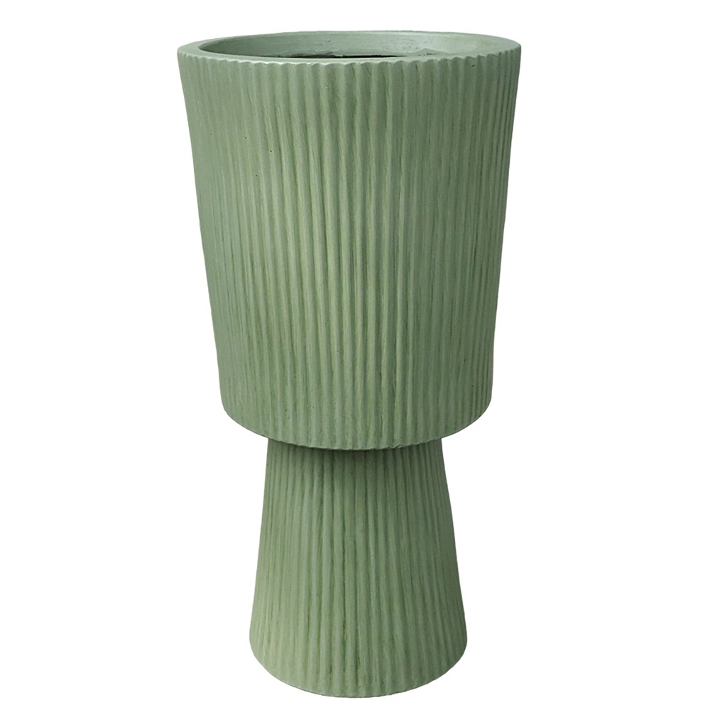 This flower vase is an outstanding piece of decor, designed to bring a sophisticated and unique atmosphere to various home or business environments. Carefully crafted from fiberglass/clay, the vase is green in color giving it a soft and refined feel. The vase will add a special aesthetic note and make your flowers shine even more in your environment.