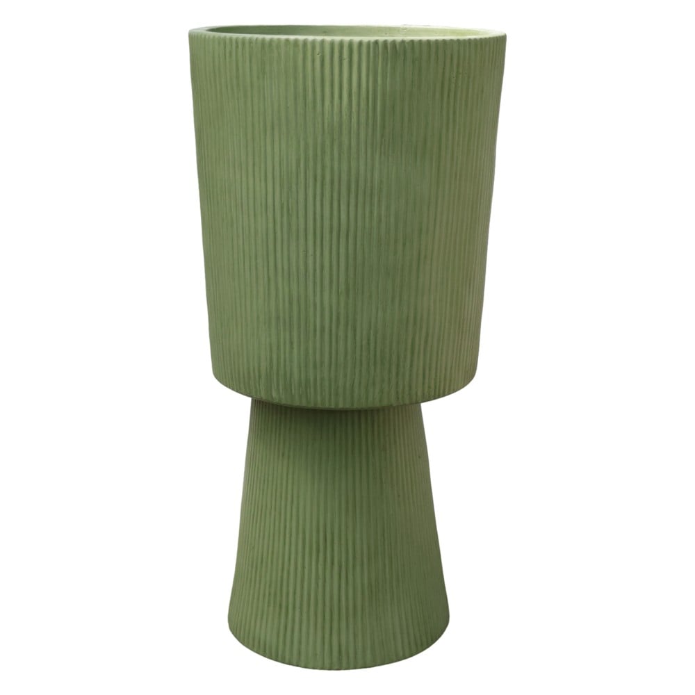 This flower vase is an outstanding piece of decor, designed to bring a sophisticated and unique atmosphere to various home or business environments. Carefully crafted from fiberglass/clay, the vase is green in color giving it a soft and refined feel. The vase will add a special aesthetic note and make your flowers shine even more in your environment.