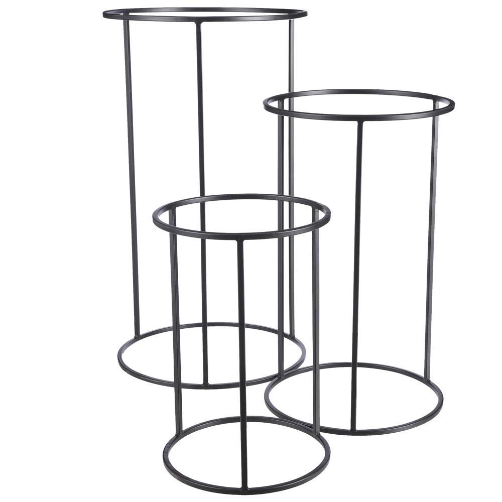Flower pot holder, set 3 pieces, metal, black, Ø30xH45 cm; Ø36xH60 cm; Ø42xH75 cm
