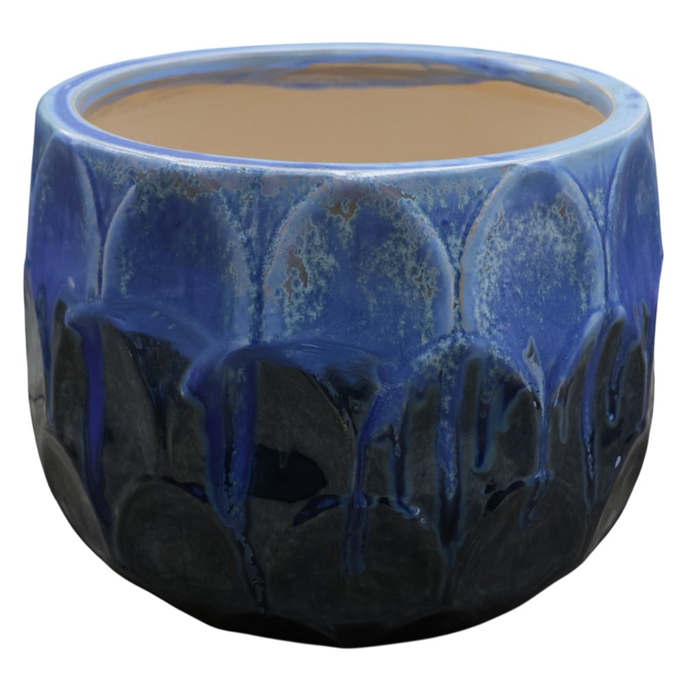 Flower pot, L, ceramic, black/blue, Ø29xH22 cm