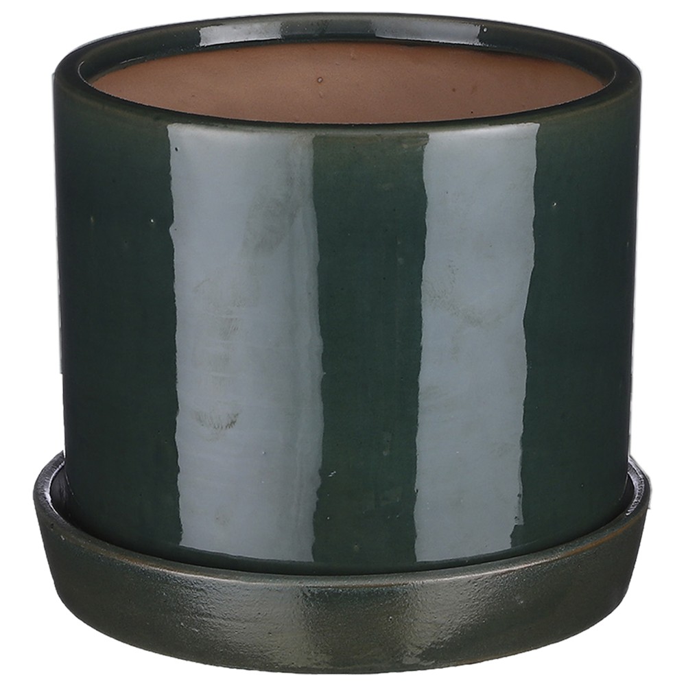 Flower pot, L, saucer included, Milan, ceramic, dark green, Ø31.5 xH26 cm
