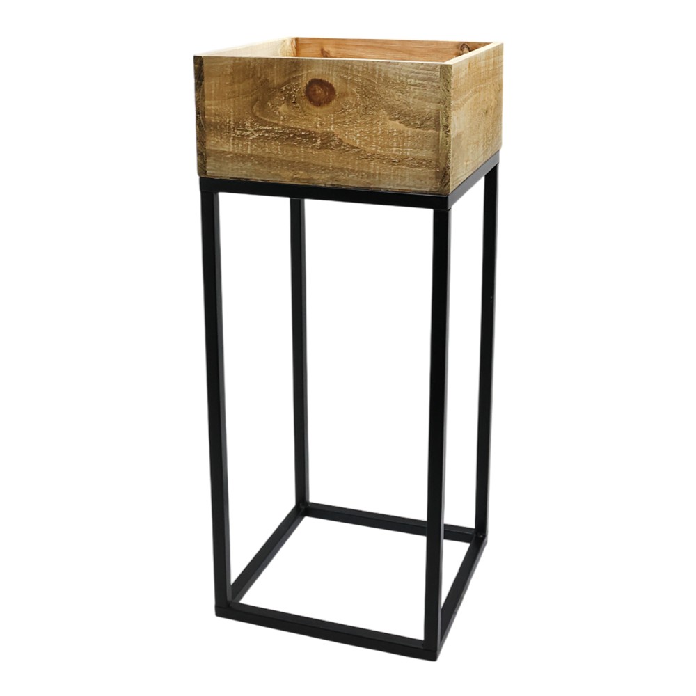 Flower pot, M, metal/wooden, brown/black, 22xH54 cm