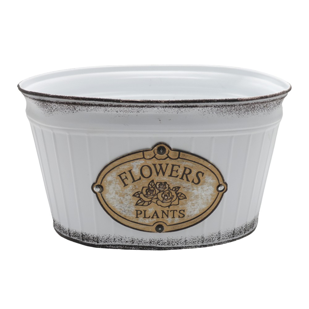 Flower pot, metal, white/brown, 28x21.5x16 cm