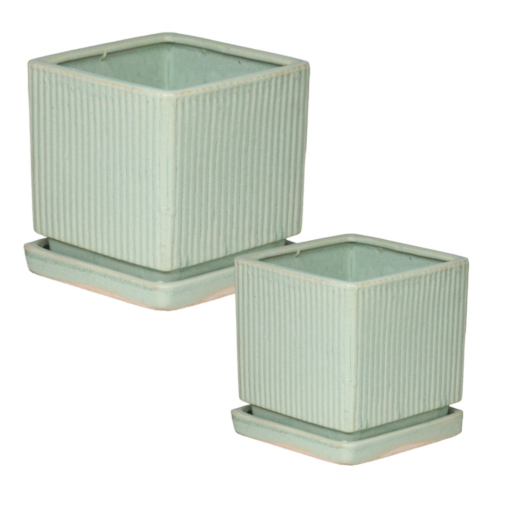 Flower pot, set 2 pieces, ceramic, light green, 13.5x13.5x13.5 cm; 17.5x17.5x18 cm