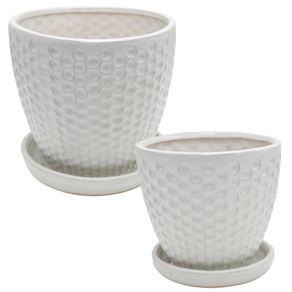Flower pot, set 2 pieces, ceramic, white, 13.5x13.5x12.5 cm; 19x19x17 cm