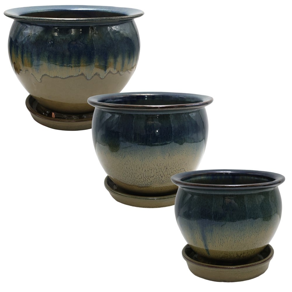 You're reviewing:Flower pot, set 3 pieces, ceramic, green/beige, 16.5x16.5x14.5 cm; 21.5x21.5x18 cm; 30.5x30.5x24.5 cm