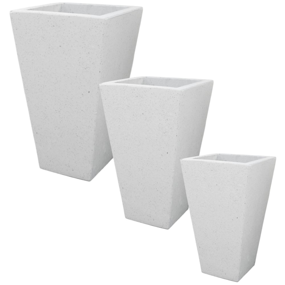 The set of 3 concrete flower pots is an element that should be added to the decoration of your environment. In three different sizes, you can create a very pleasant decoration in the spaces of your gardens and environments. The vase is made of concrete and resistant to external atmospheric conditions. The white color adds elegance and creates a sophisticated decoration. It comes in a unique and modern shape. The dimensions of the vases are: S: 26x26xH45cm; M: 34x34xH62cm; L: 45x45xH81cm.