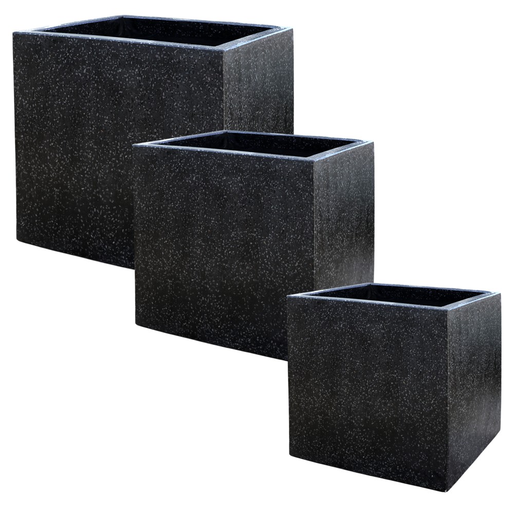 The set of 3 concrete flower pots is an element that should be added to the decoration of your environment. In three different sizes, you can create a very pleasant decoration in the spaces of your gardens and environments. The vase is made of concrete and resistant to external atmospheric conditions. The black color adds elegance and creates a sophisticated decoration. The dimensions of the vases are: S: 40x40xH40 cm; M: 50x50xH50cm; L: 60x60x60cm.