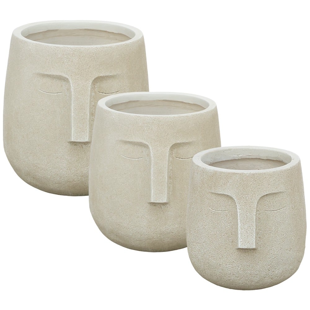 This set of three flower vases is a wonderful piece of decor that will add a sense of modernity and elegance to any setting. The fibreglass/clay creation gives it a sophisticated and soft touch, while the soft beige color makes it stand out and be a focal point in your decorating style. With different dimensions and a modern design, this set will add a special aesthetic touch to your environment