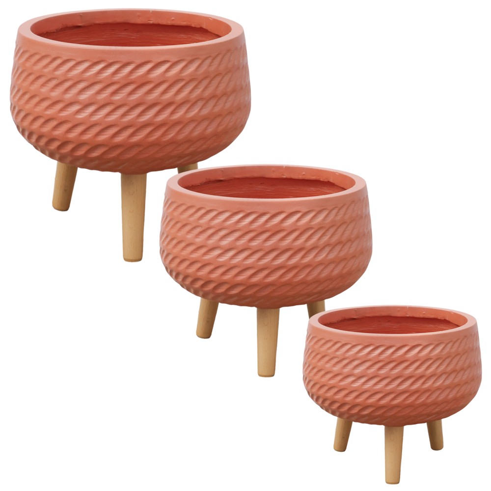 This set of three flower vases is a wonderful piece of decor that will add a sense of modernity and elegance to any setting. The fiberglass/clay creation gives it a sophisticated and soft touch, while the terracotta color makes it stand out and easily match your decorating style. With different dimensions and a modern design, this set will add a special aesthetic touch to your environment.