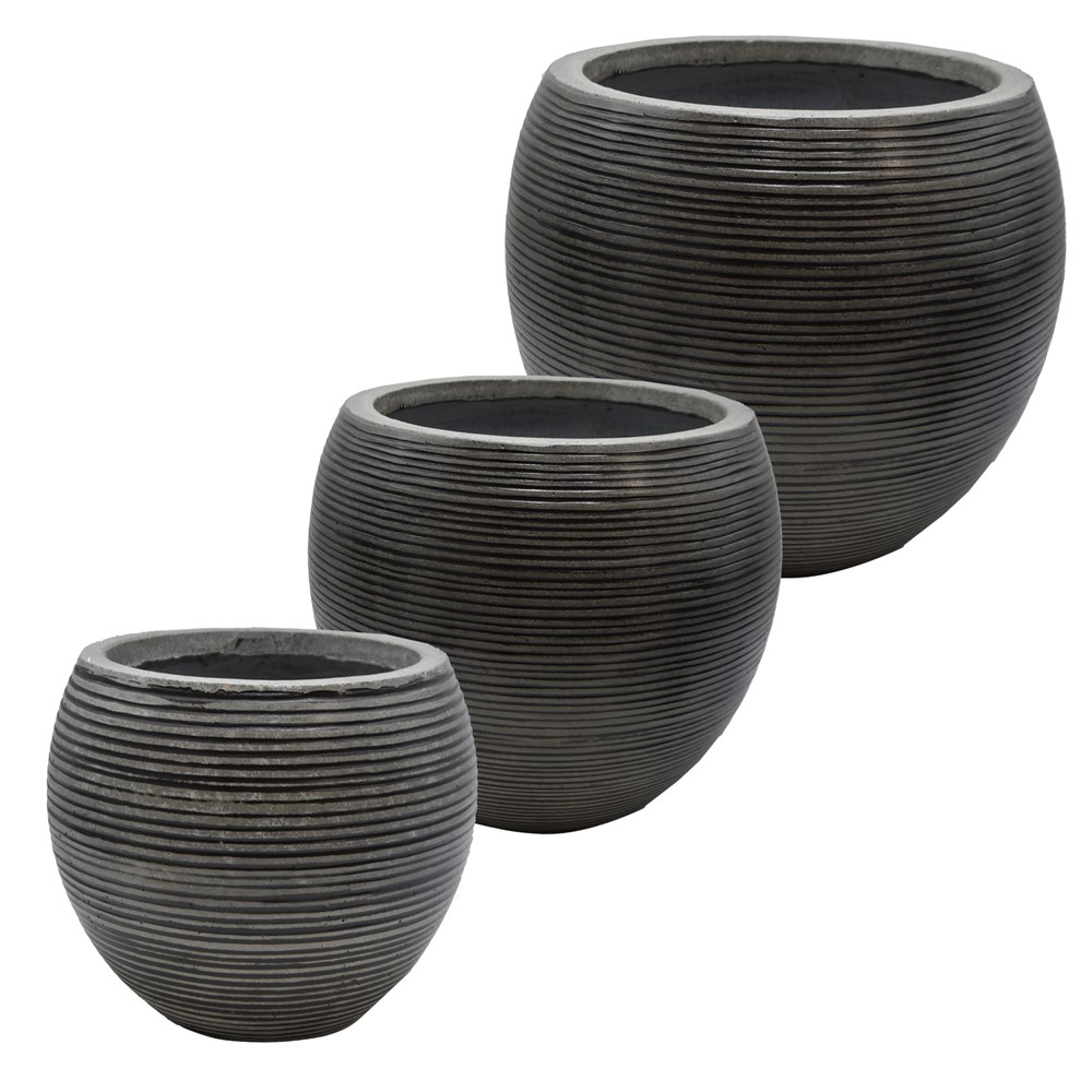 Flower pot, set of 3 pcs, cement, grey, Round: S-Ø23 xH20 cm; M-Ø34.5 xH30 cm; L-Ø51.5 xH44.5 cm