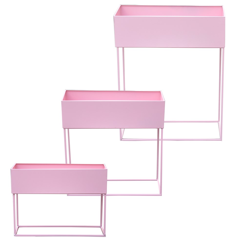 Flower pot, set of 3 pcs, metallic, pink, 42x14xH32 cm; 46x17xH48 cm; 50x20xH64 cm