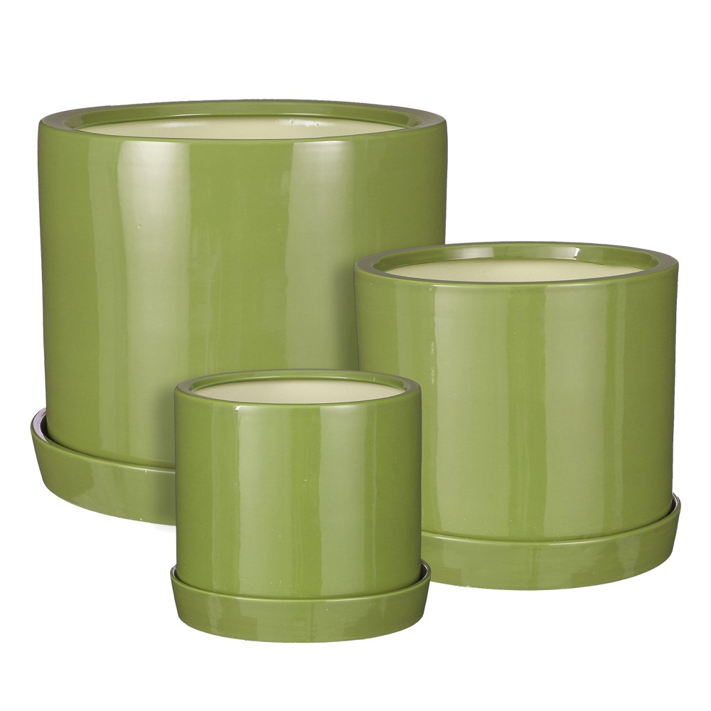 You're reviewing:Flower pot, set of 3 pcs, saucer included, Milan, ceramic, green, Ø19 xH17 cm; Ø24 xH21 cm; Ø31.5 xH26 cm