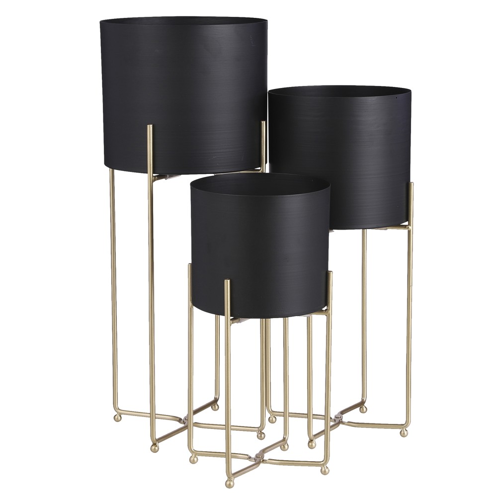 Flower pot, set of 3 pieces, Aries, metal, black/gold, Ø19xH38 cm; Ø21xH49 cm; Ø24xH58 cm