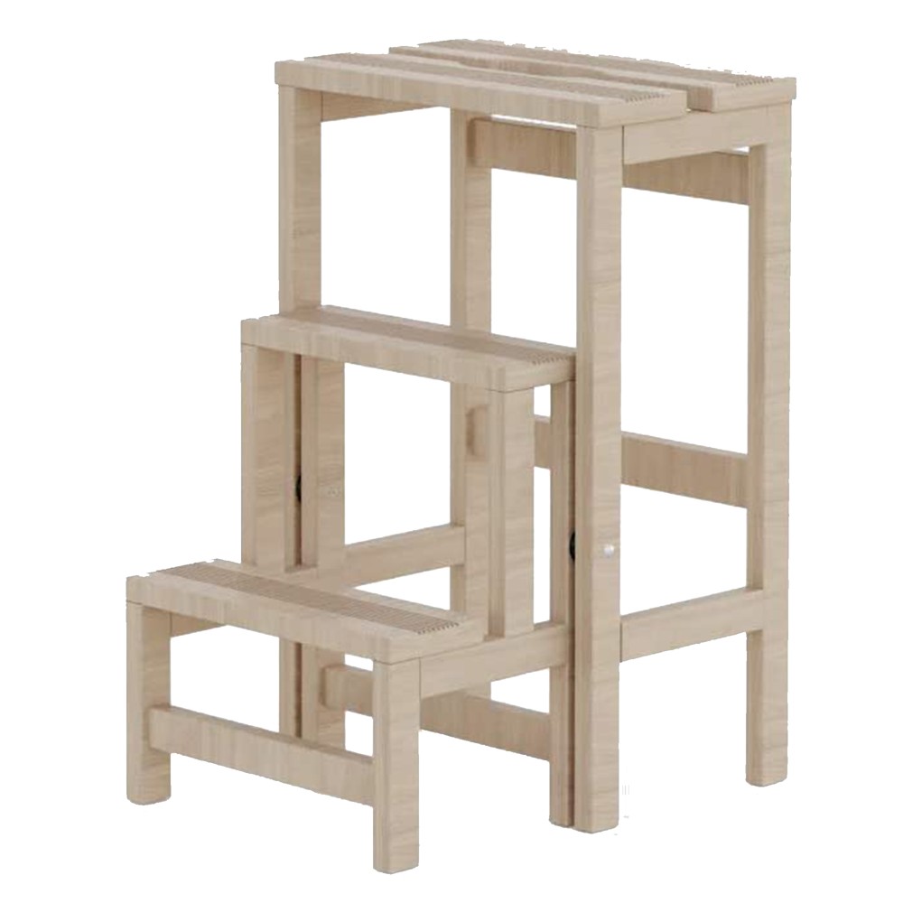 Folding bench, 2 levels, beech wood, natural wood, 23x37xH57 cm