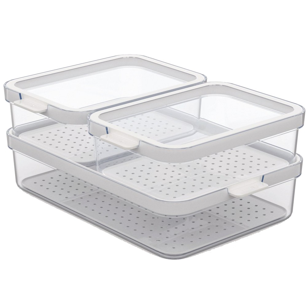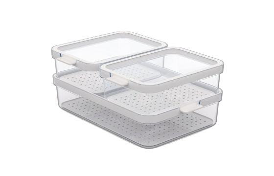 Maximize your refrigerator space with this practical 3-piece organizer set. With capacities of 1.2L and 2.6L, these clear containers are perfect for storing fruits, vegetables, leftovers, and more. The durable plastic material and modular design allow you to arrange them flexibly to fit any space. The set includes two 1.2L containers (19.6x13.6x6.2cm) and one 2.6L container (28.2x18.4x6.2cm).