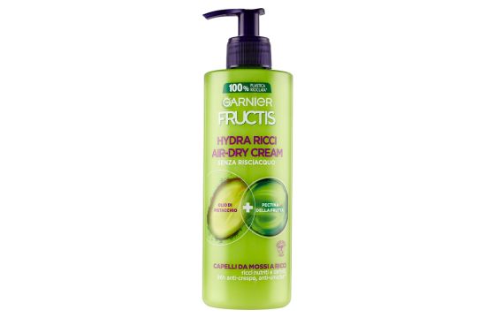 The Fructis Hydra Ricci Air-Dry Cream treatment combines pistachio oil with natural fruit pectin to intensively nourish and define your curls even without using a hair dryer. It is a release treatment, suitable for curly hair that has a tendency to curl, that does not stick, does not leave residue and does not weigh the hair down.