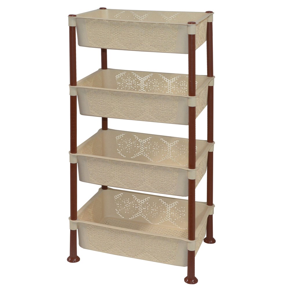 The four storey fruit holder with rectangular shape is very suitable for planting fruit because it has a little space and makes your environment more beautiful. This holder can also be used for setting shampoos.