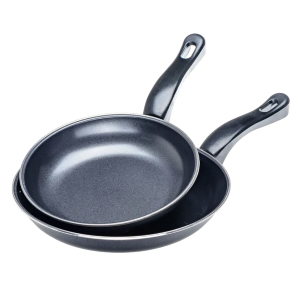 The frying pan set (2 pieces), made of high quality steel and with an elegant black finish, is a practical and modern choice for preparing everyday meals. With a diameter of 20 cm and 24 cm, this set offers flexibility for cooking a variety of foods, from breakfast eggs to vegetables or meat. The strong structure ensures even heat distribution, enabling efficient and low-fat cooking. The non-stick surface and minimalist black design make this set easily adapt to any kitchen style, offering an ideal combination of functionality and aesthetics.