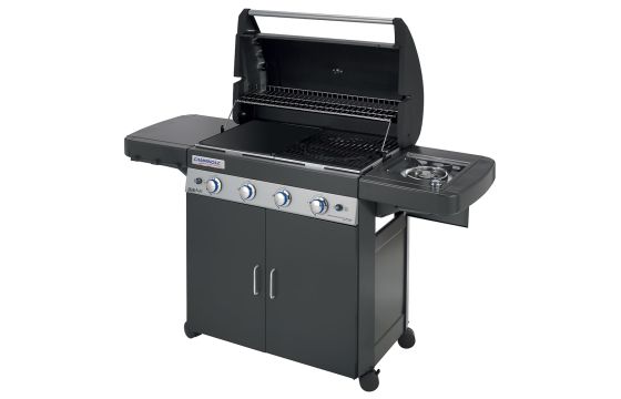 Gas barbecue, made of durable stainless steel material, with enamelled cooking surface, which does not stick and is easy to clean. The barbecue is equipped with 3 main burners, for roasting meat, fish and vegetables, as well as a side burner, which is used mainly for the preparation of sauces. It works with the Dual Gas system (Methane / LPG), which allows for a quick preparation of various foods. The barbecue has a side table and is equipped with 4 wheels, which facilitate movement. InstaClean™ integrated cleaning system facilitates cleaning after use.