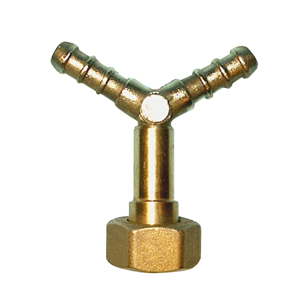 Gas connector (LPG) with nut, for cylinder, 2 outlets, bronze