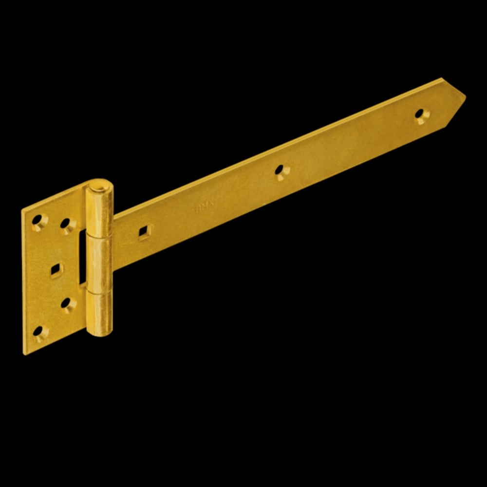 Gate hinge, made of galvanized zinc material, with dimensions of 30x4.5x9x0.3 cm, in golden color. The constituent material is resistant to use, heavy weights, rust or abrasion. It can be used for mounting the outdoor gates of the fences and for other uses.