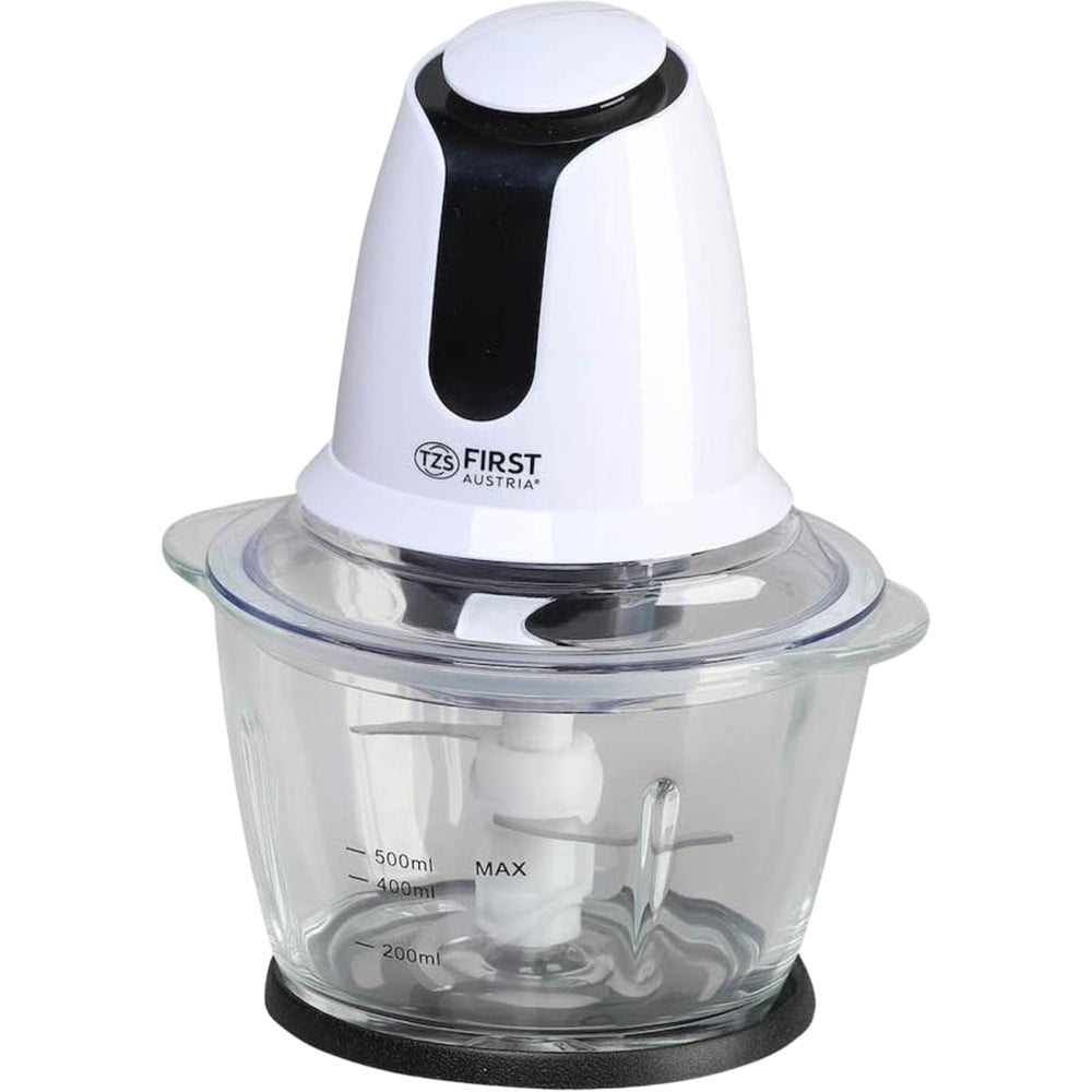 The electric universal chopper is a powerful helper that chops, cuts, mixes as well as purees food. The blender is suitable for cooking and baking varied dishes and cuts herbs for salad, chops nuts and turns fruits into healthy smoothies. With a power of 500 watts and four stainless steel blades, all ingredients are precisely cut and collected in the 1.2 L glass container. The modern design as well as the handy size make the powerful food processor indispensable in every kitchen.