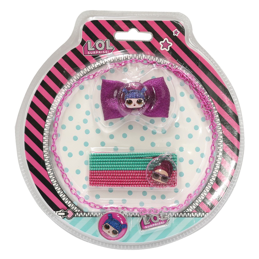 LOL Surprise hair accessory set + pendant is a special set of hair accessories, designed for children who want to create different and special styles with their hair. The set includes two separate hair accessories, all in pink, a favorite and attractive color for children. In addition to the hair accessories, this set also includes a pendant similar to the famous LOL Surprise characters.