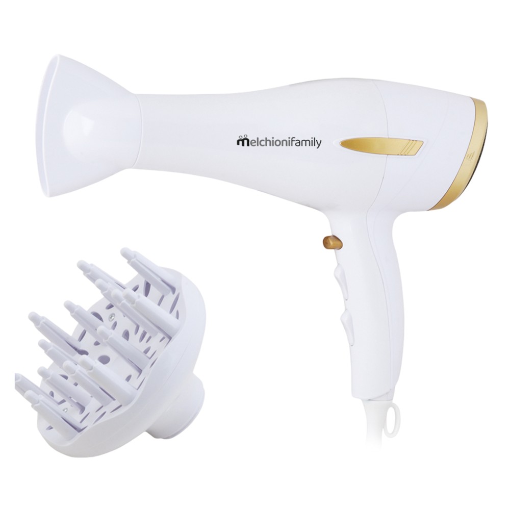 Hair dryer DC motor 2200W Melchioni. 3 temperature positions/2 speeds. Cold air shot. With concentrator and diffuser. Hanging hook. Safety auto switch-off. Power supply: 220-240V ~ 50Hz