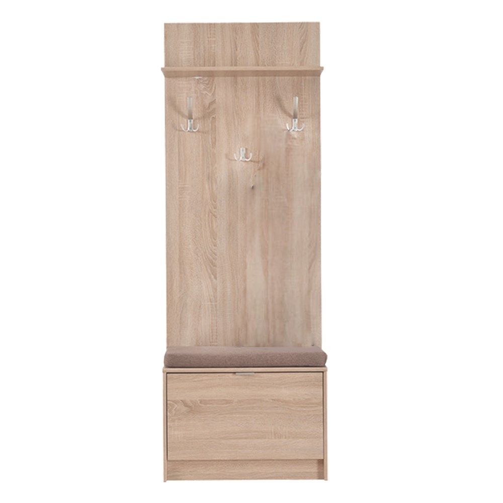 The hall unit model FLAMENCO will contribute to the complete furnishing of the hallway. It has three hangers as well as a closed double shelf for footwear. If the dimensions of the room allow it, and the needs demand it, the hall unit model FLAMENCO can be combined with shoe cabinets of various sizes.