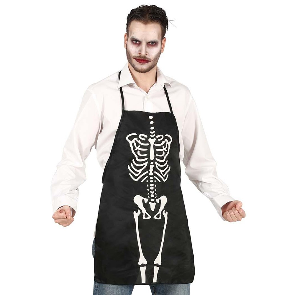 Apron with skeleton figure, in black color. Ideal for Halloween.