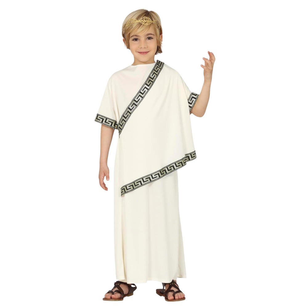 Roman costume for children, made of polyester material, mixed color. The component material is soft to the touch and does not cause skin irritation. This product is suitable for use by children aged 7-9 years with a height of 125 cm to 135 cm, bust 67-70 cm, waist 59-60 cm, hips 67-72 cm.