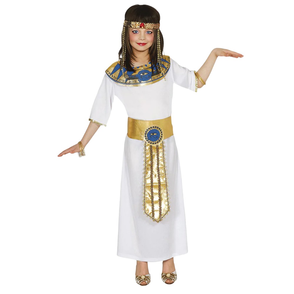 Egyptian costume for children, made of polyester material, mixed color. The component material is soft to the touch and does not cause skin irritation. This product is suitable for use by children aged 10-12 years with a height of 142 cm to 148 cm, bust 73-76 cm, waist 64-65 cm, hips 75-78 cm.