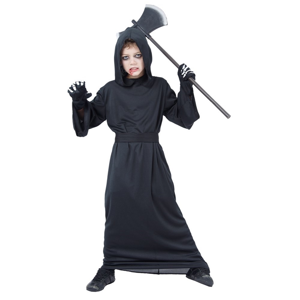 Are you ready to celebrate the halloween party! What type of reaper are you? This character is really running the grim Halloween atmosphere. Anyone who's dressed as a ghost, skeleton, or zombie knows you well.This black gream reaper will transform you into the classic dreaded figure of death. The sleeves are wide for spooky gesticulation. It's topped off with a black hood and sheer veil to hide your eerie face.