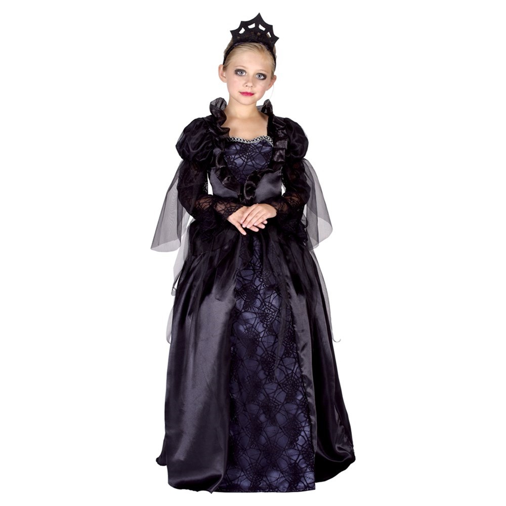Our wicked queen costumes is decorated with black ribbon details on the chest and a stand up collar give the whole costumes a shanny elegance.