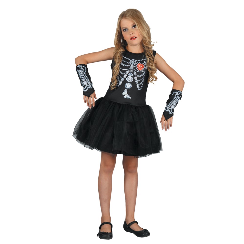 Get your dancing bones on for your next fancy dress costume party in this girls deluxe skeleton costume. Perfect for your next spooky Halloween party!