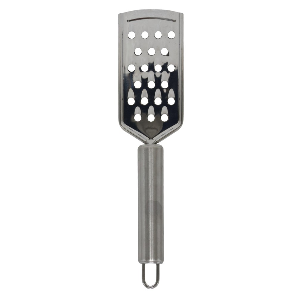Stainless steel hand grater in silver color, length 24 cm. This product offers a great way to grate vegetables, cheese, or other products according to your preferences.