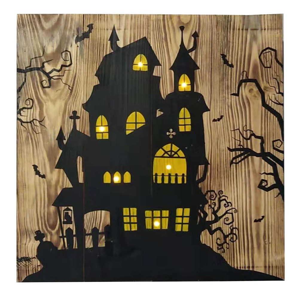 This Hanging board with black house will add a frightful element to your home this Halloween season.
