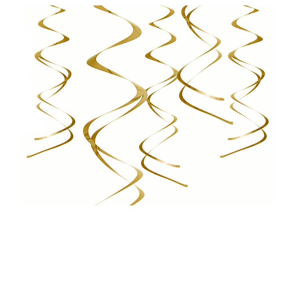 Hanging decorations swirls, foil, 60 cm, gold, 5 pieces, 1 pack