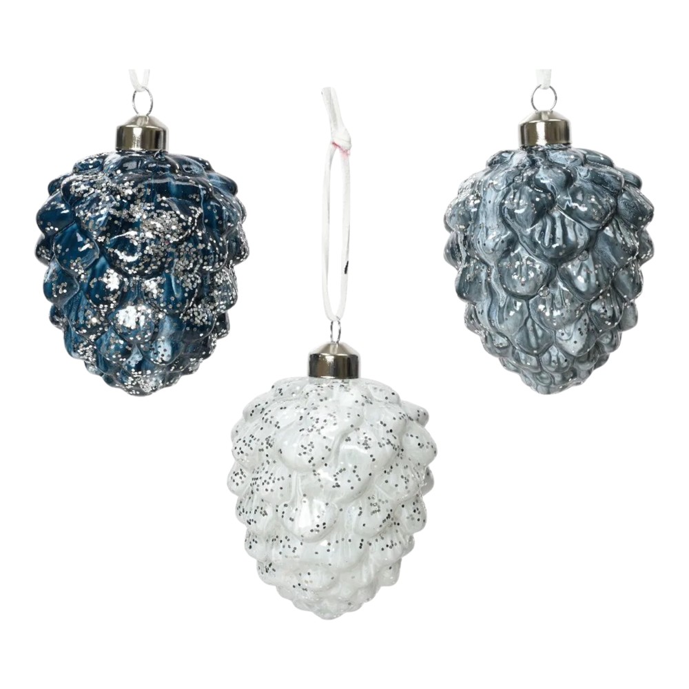 You're reviewing:Hanging decorative object, glass, pine cone, white/blue color, L8xW8xH10 cm