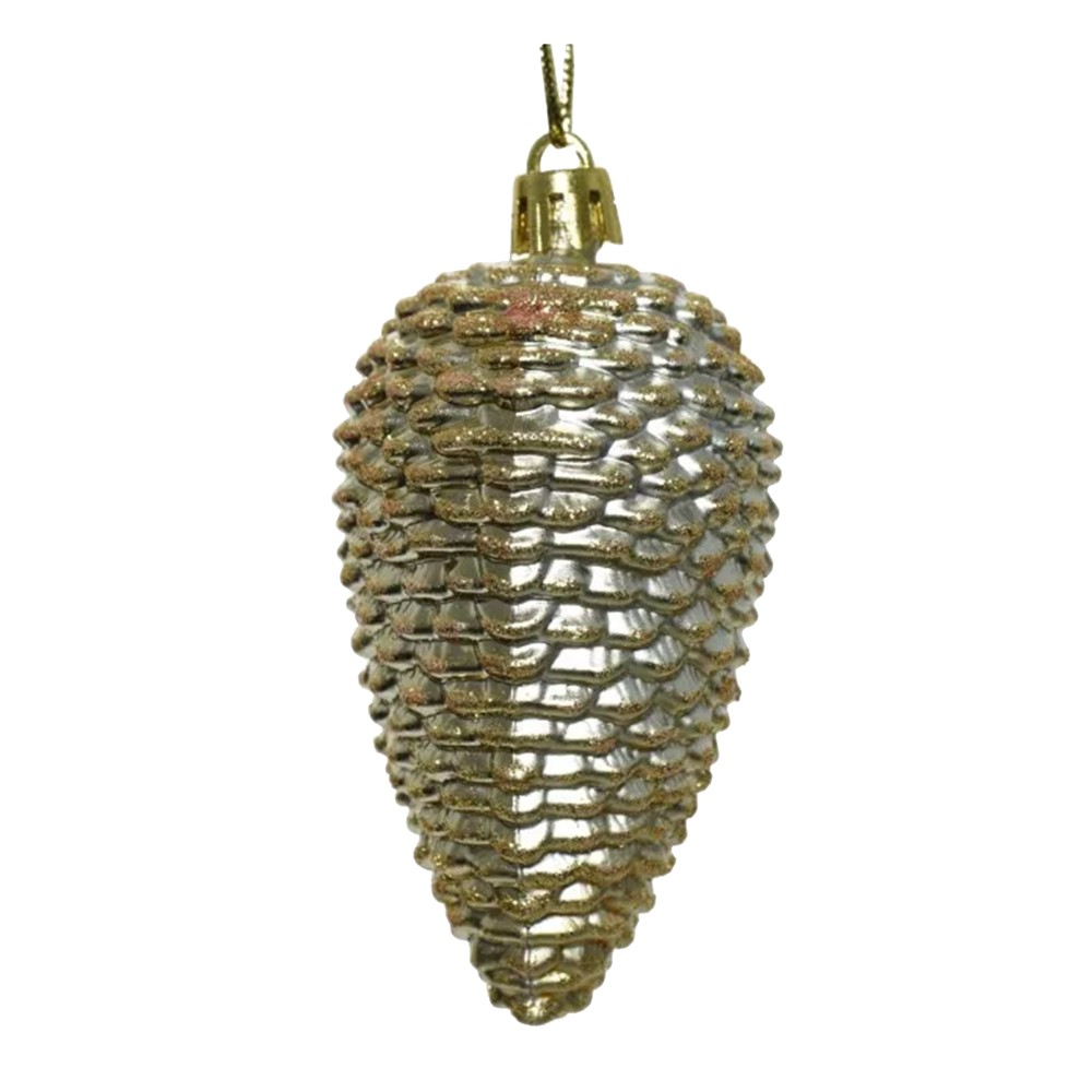 Hanging decorative pine tree, plastic, gold, 9 cm