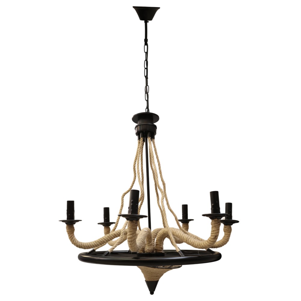 Hanging lamp with decorative design, equipped with 6 E27 lamp holders. It has a diameter of 65 cm and a height of 45 cm, made of natural rope, offering warm lighting and a unique rustic look.