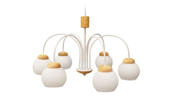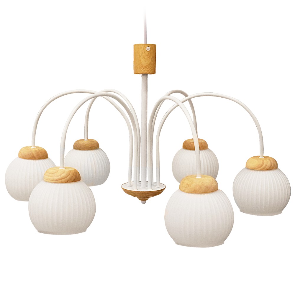 Hanging Light, 6XE27, metal/glass, white/wood colour