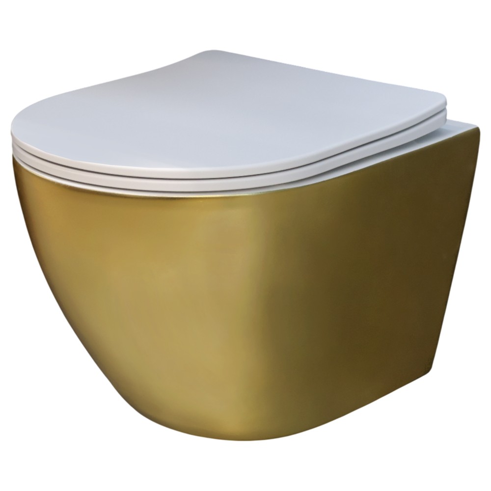 A gold colored toilet that combines modernity with the tradition of precious colors and design. Made of quality porcelain, it guarantees not only elegance but also durability. Tornado flush is an excellent feature of this toilet.The flush combines and enhances the power of the water by channeling it in a single direction, and reaches every point of the toilet bowl to prevent bacteria, germs, and dirt from accumulating. 360° cleaning power reaches every spot using less water. The Tornado Flush produces a downward pull to prevent the mist or spray water from escaping out of the bowl, preventing the spread of dirt and bacteria. Also, the shape and wall mounting make it easier to clean and maintain your toilet. The dimensions of 49x35xH34 cm make this toilet suitable for any space. Includes the lid and necessary accessories for assembly.