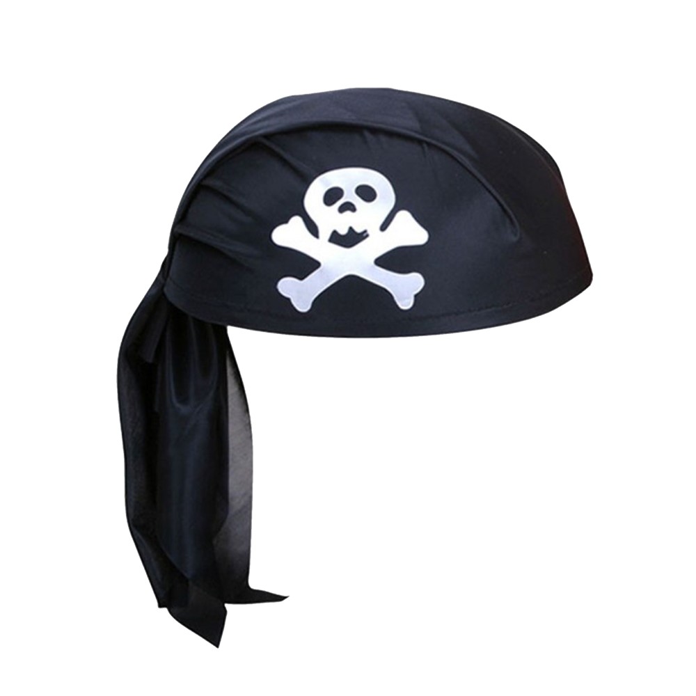 Pirate head scarf, made of polyester material in black with the pirate coat of arms in white. The scarf can be used by both genders for women and men over 6 years old. Serves to collect hair like a pirate.