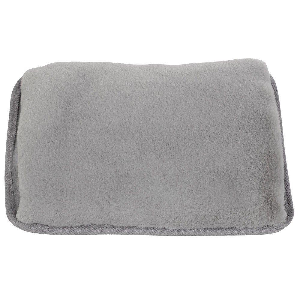 Electric hot water bag, for a pleasant and immediate feeling of warmth. Pillow-shaped, pleasant touch sensation with padded fur fabric, gray color. External power supply / recharge kit. Automatic switch-off device when the max. temperature is reached. emperature ≤70°C. Power consumption: 500W. Charging time: 8-15 minutes. Keep warm: up to 6 hours (internal use) up to 3 hours (external use). Cable length: 60-65cm. Dimensions: 260 x 190 x 60 cm.