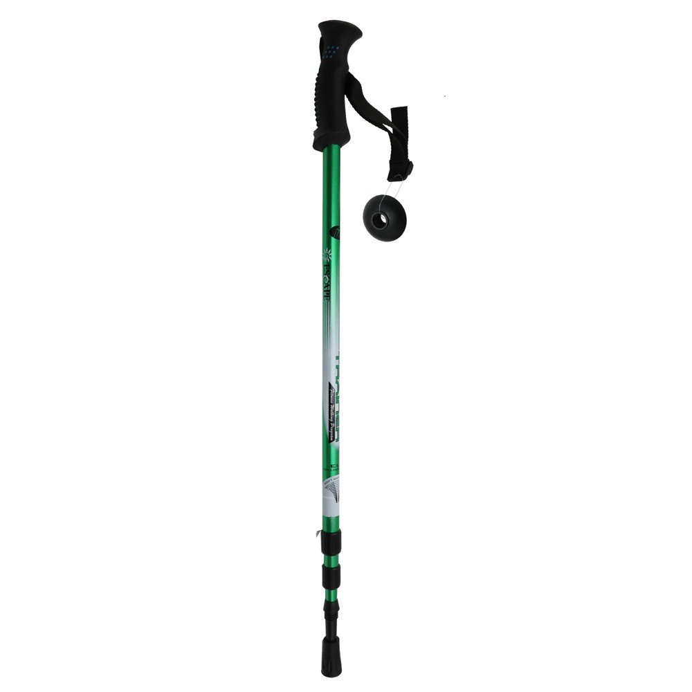 Hiking stick, made of aluminum material, with a foldable body, in green and black color. It is a perfect accessory for sports enthusiasts. It helps you climb the mountain in difficult terrain, providing full support.
