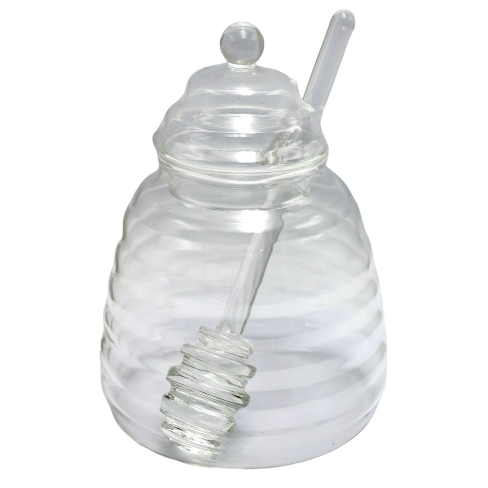 The spoon honey jar, made of transparent glass, has a height of 10 cm and a capacity of 480 ml. This jar offers an excellent choice to store and serve honey safely and fresh. Glass materials make it durable and suitable for daily use. The transparent design allows the user to see the amount of honey inside the jar. The included spoon provides a convenient way to dose and serve honey with ease. This dimension makes it convenient to store in the kitchen or to serve at the table during meals.