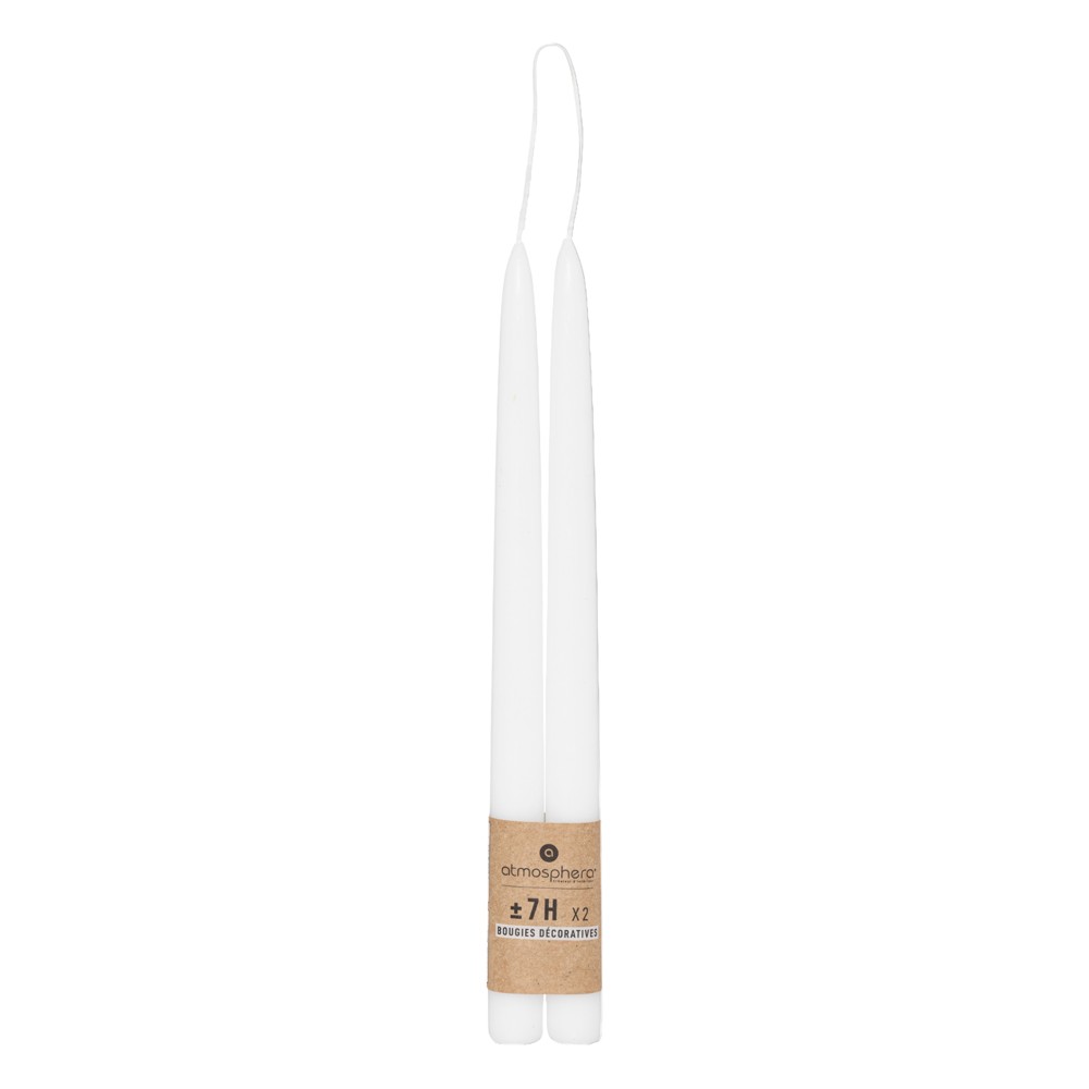 Long "Hugo" candles (packs 2 pieces), made of paraffin, white in color and 30 cm long, are an elegant choice to add a soft lighting and a warm atmosphere to your home. These white candles offer a clean and beautiful decorative element for many environments.